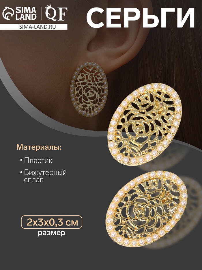 Серьги с жемчугом «Ажур» грациозная, цвет белый в золоте