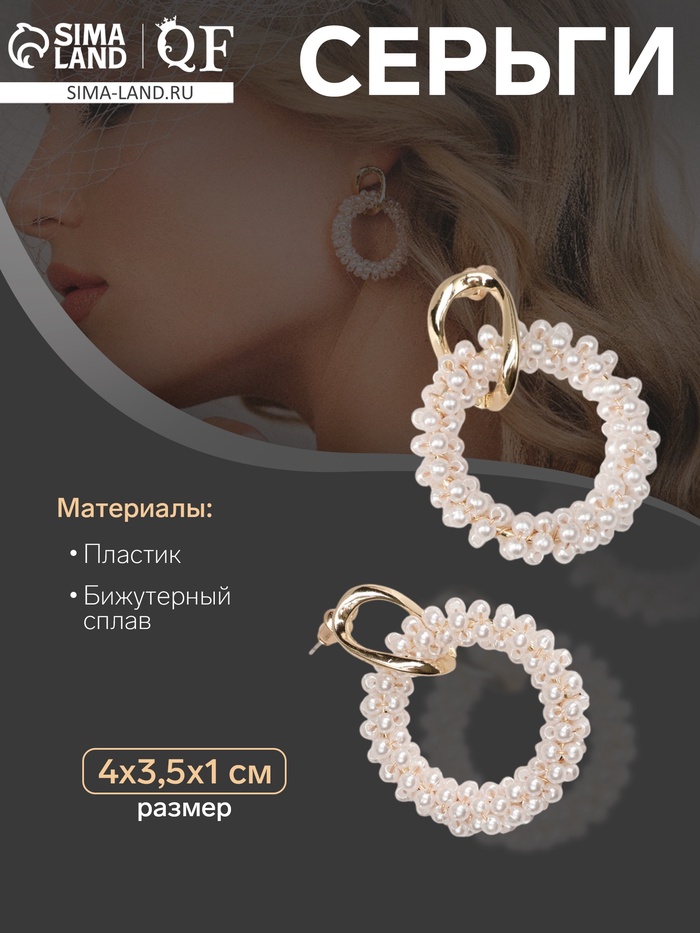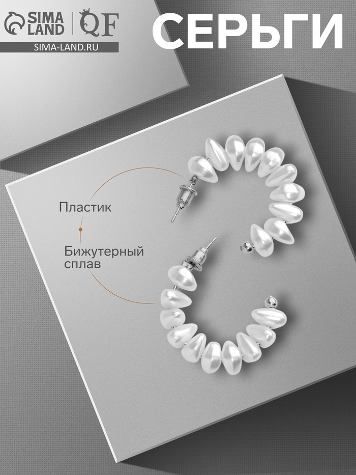 Серьги с жемчугом «Бусина» круги витые, цвет белый в серебре