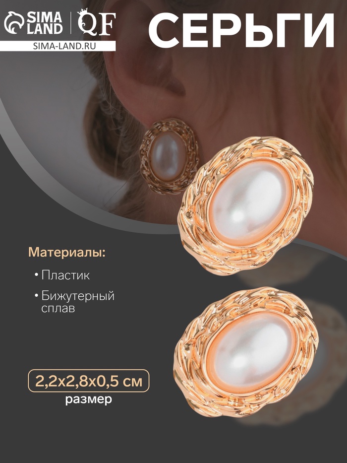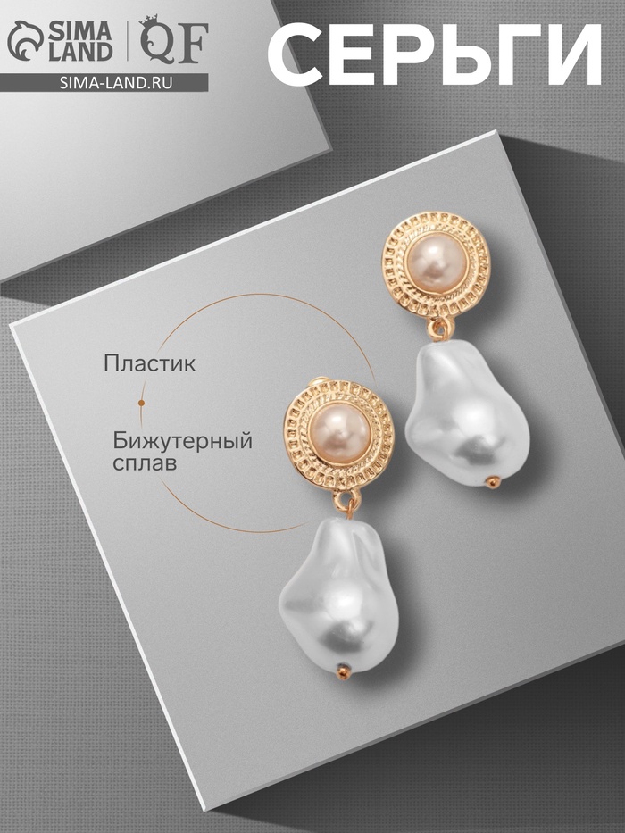 Серьги с жемчугом «Абстракция» крупная бусина, цвет золото