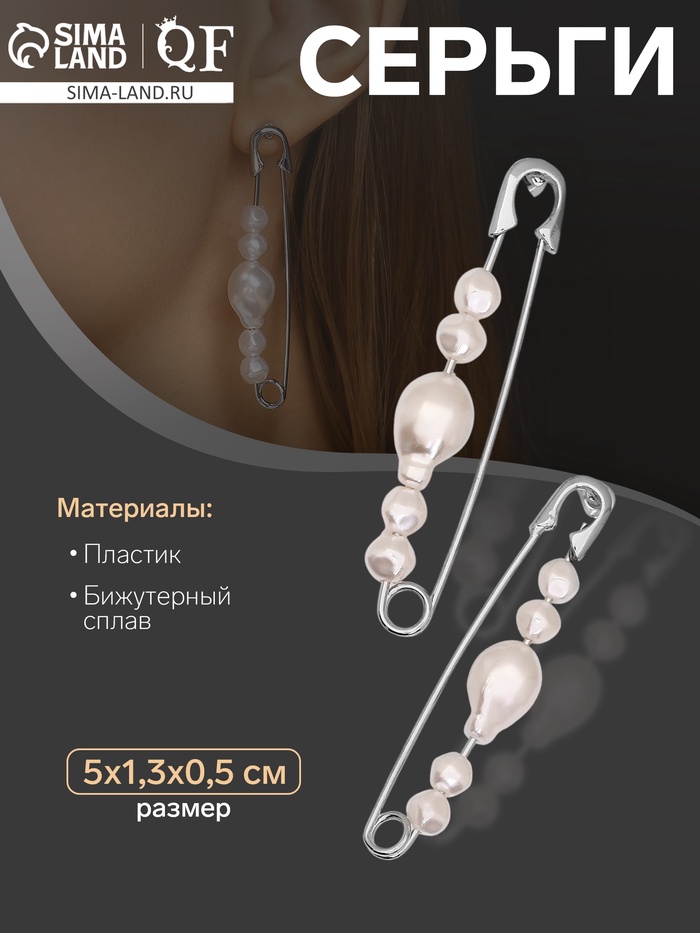 Серьги с жемчугом «Бусина» союз, булавка, цвет серебро