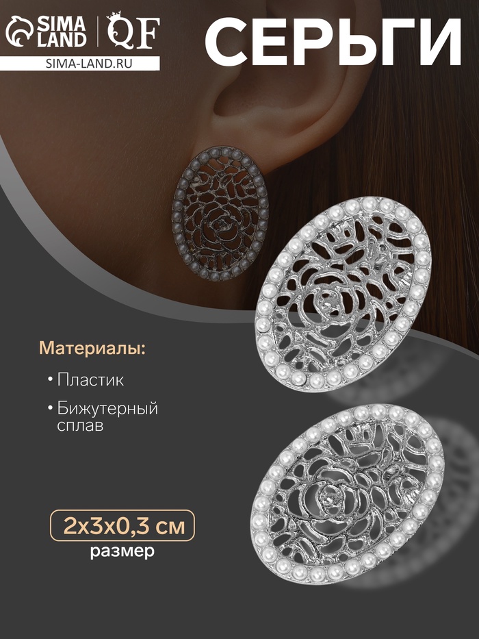 Серьги с жемчугом «Ажур» грациозная, цвет белый в серебре