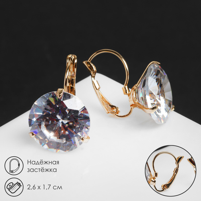 Серьги со стразами «Большой сапфир» в наклоне, d=1.6, белые в золоте