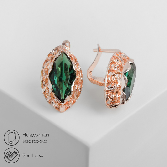 Серьги со стразами «Эдель» эллипс ажурный, цвет изумрудный в розовом золоте