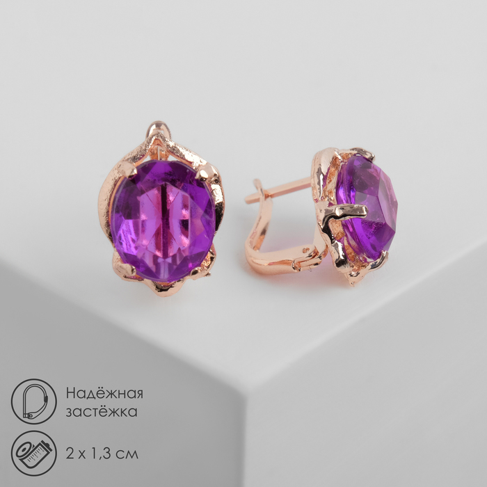 Серьги со стразами «Эдель» овальчик, цвет фиолетовый в золоте