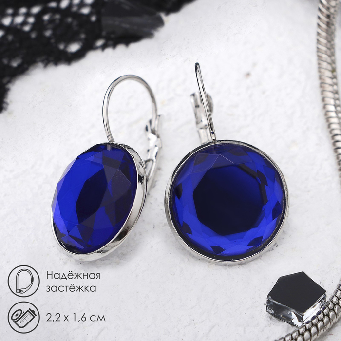 Серьги со стразами «Яркая классика», синие в серебре, d=1.4 см