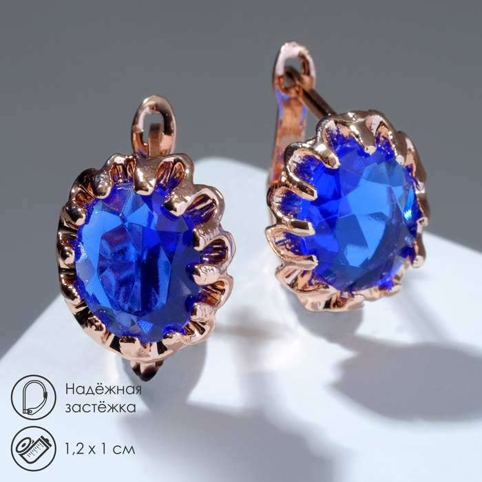 Серьги со стразами «Эдель» овал кружево, синие в розовом золоте