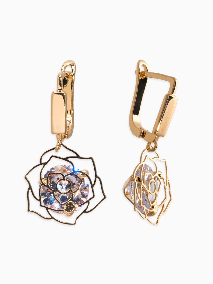 Серьги со стразами «Яркая классика», белые в золоте, d=1.4 см