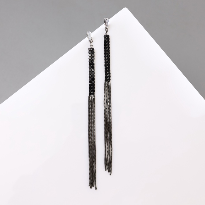 Серьги висячие со стразами «Капель» блеск, цвет бело-чёрный в сером металле, 11 см