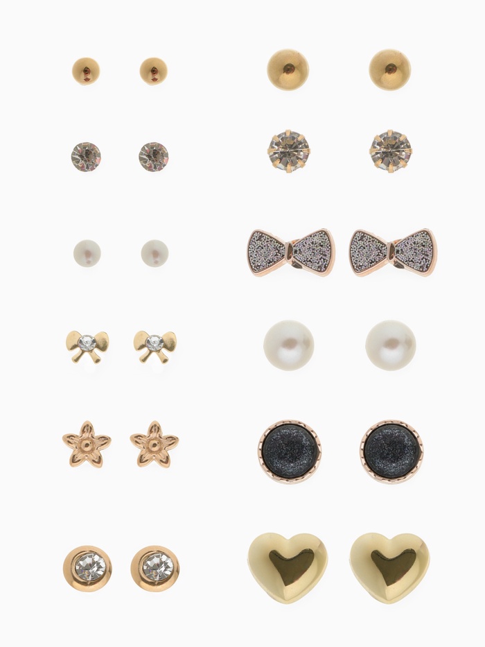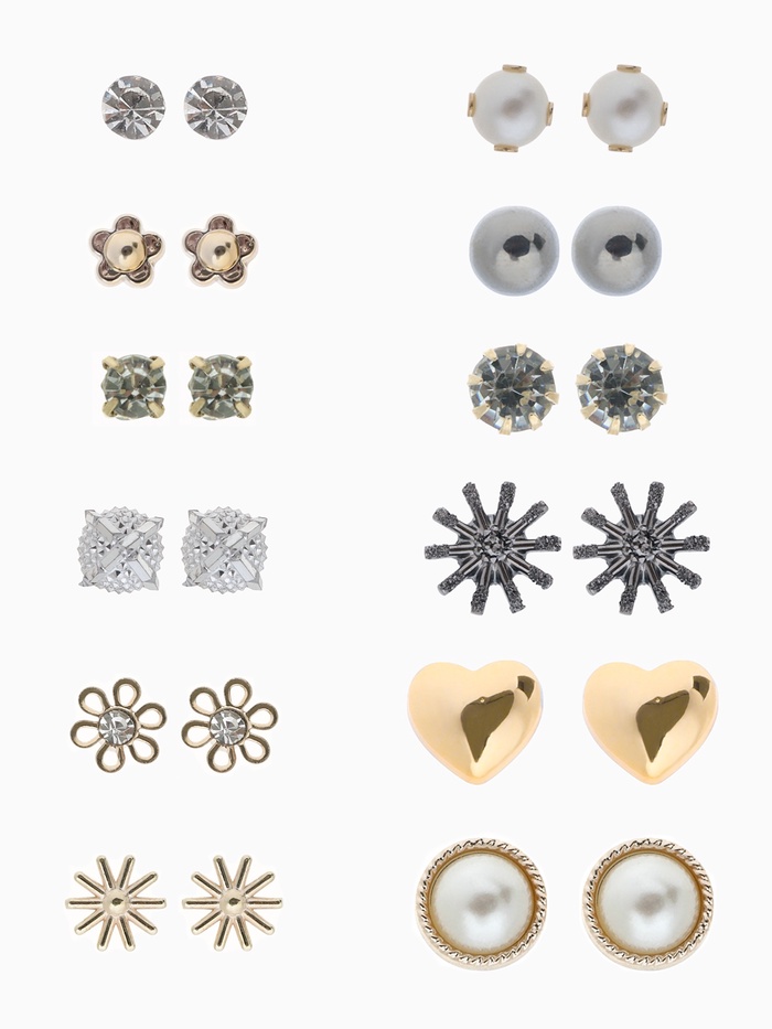 Серьги пусеты One year, 12 пар, строгий стиль, миксы