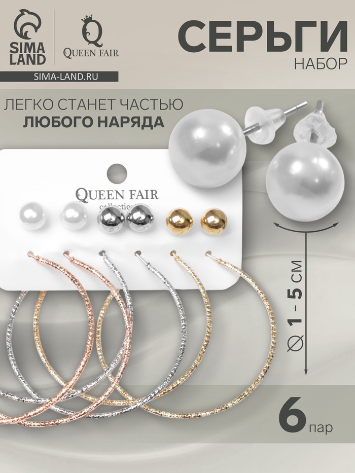 Набор серег QF «Настроение», 6 пар, нюанс, цвет МИКС, d=5 см
