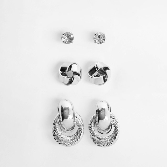 Набор серег QF «Нежность», 3 пары, кольца Сатурна, цвет белый в серебре