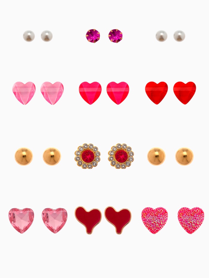 Серьги пусеты 12 пар «Сердечки» свидание, миксы