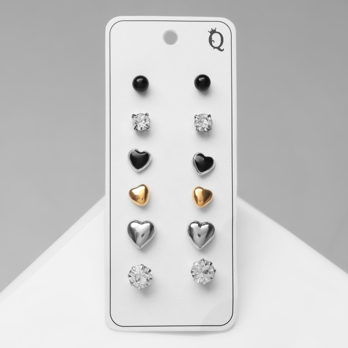 Серьги пусеты 6 пар «Романтика» сердца, цветные