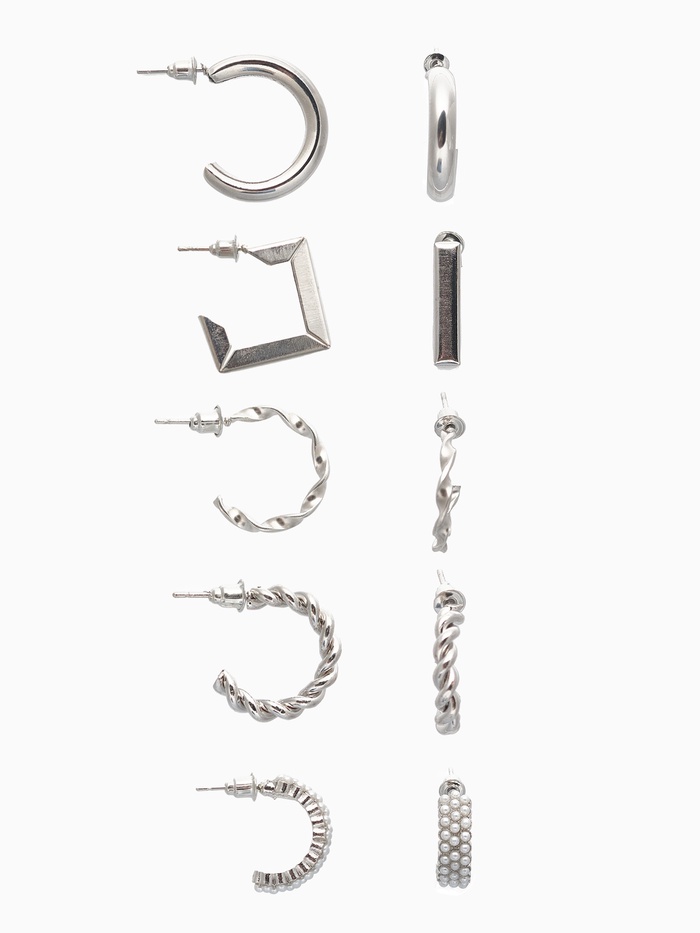 Серьги набор 5 пар «Леди» линии, белые в серебре