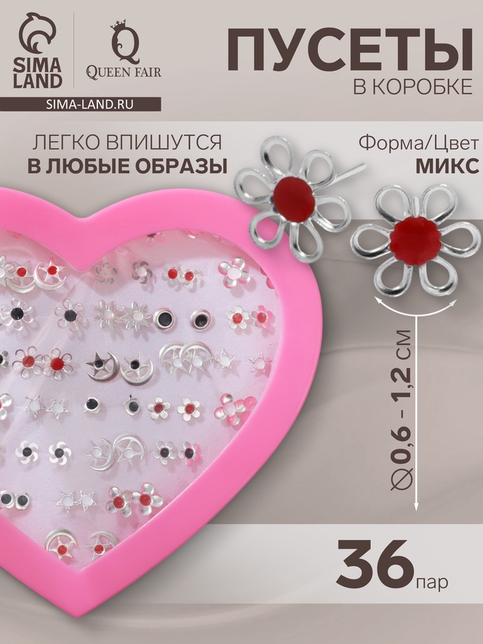 Серьги пусеты в коробке QF «Рисунки», 36 пар, трио, цвет МИКС в серебре