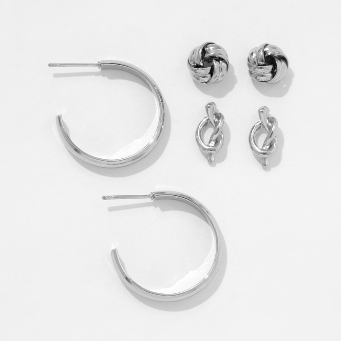 Набор серег QF «Нежность», 3 пары, узелок, цвет серебро, d=2