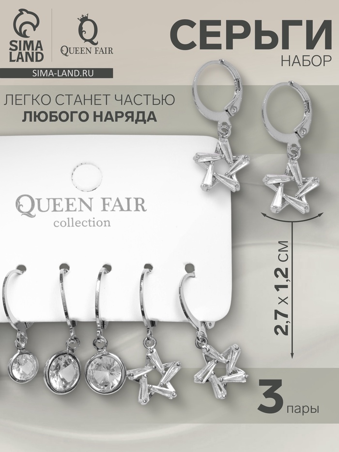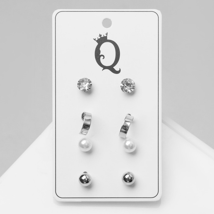 Серьги набор 3 пары «Топ» бьюти, цвет белый в серебре