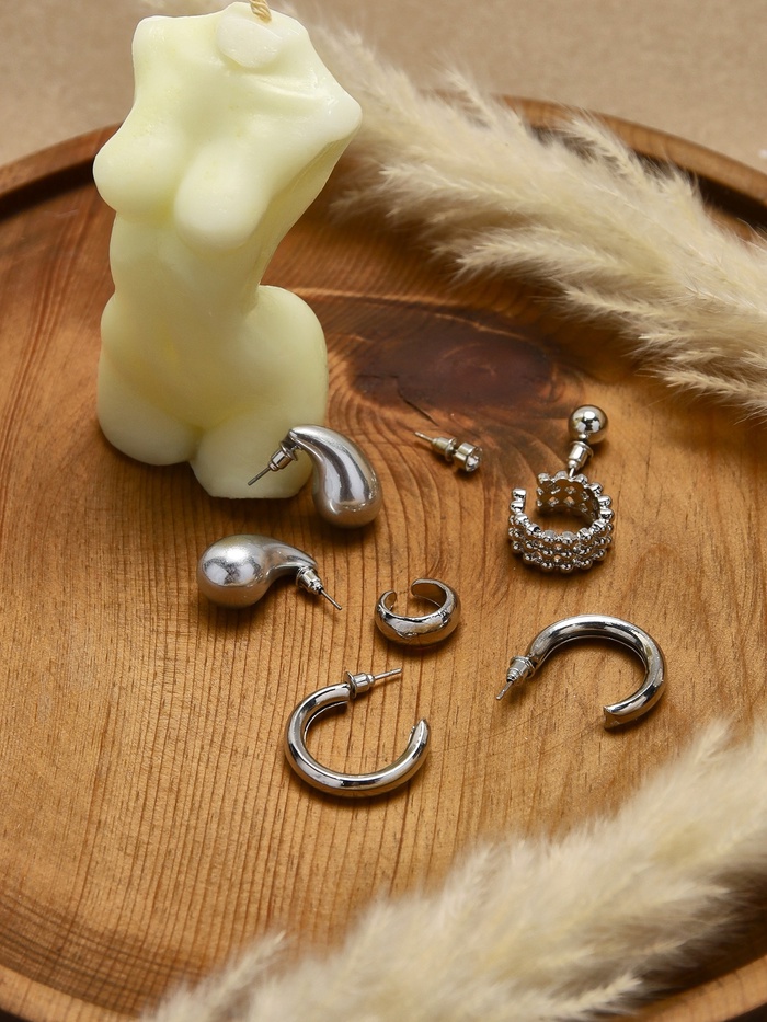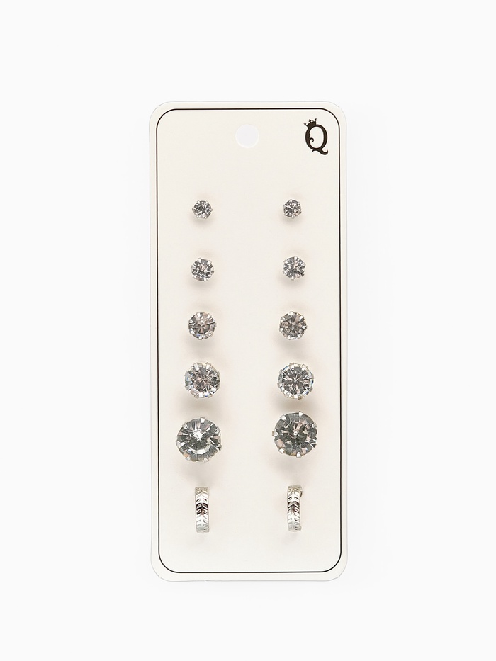 Серьги пусеты 6 пар «Романтика» круги, белые в серебре