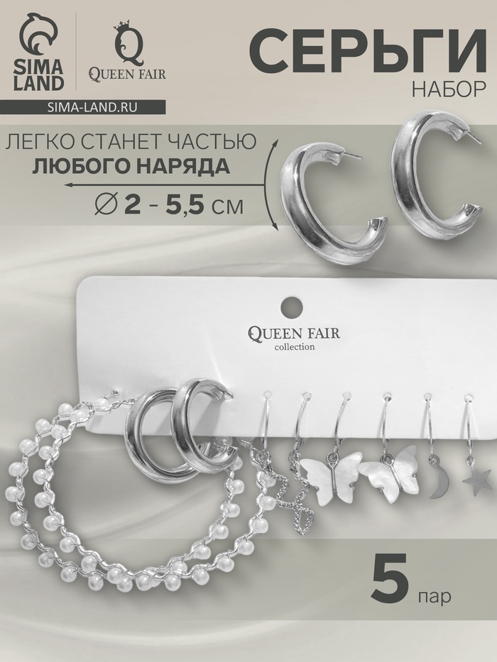 Серьги пусеты QF «Жемчужные», 6 пар, планеты, белые в серебре