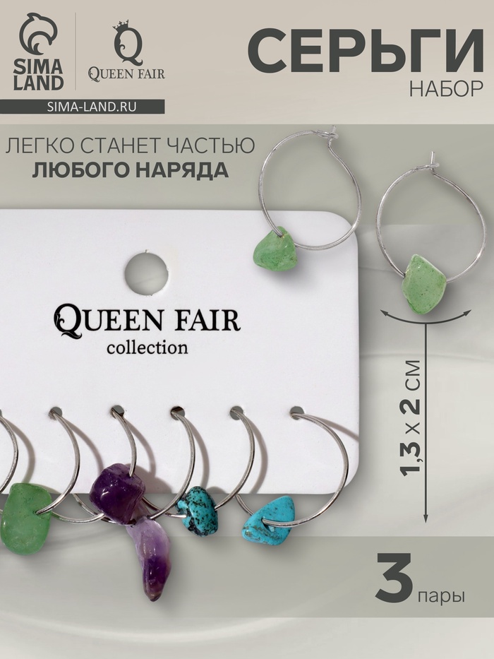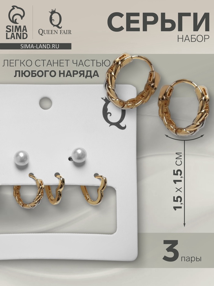 Набор серег QF «Топ бьюти», 3 пары, цвет белый в золоте
