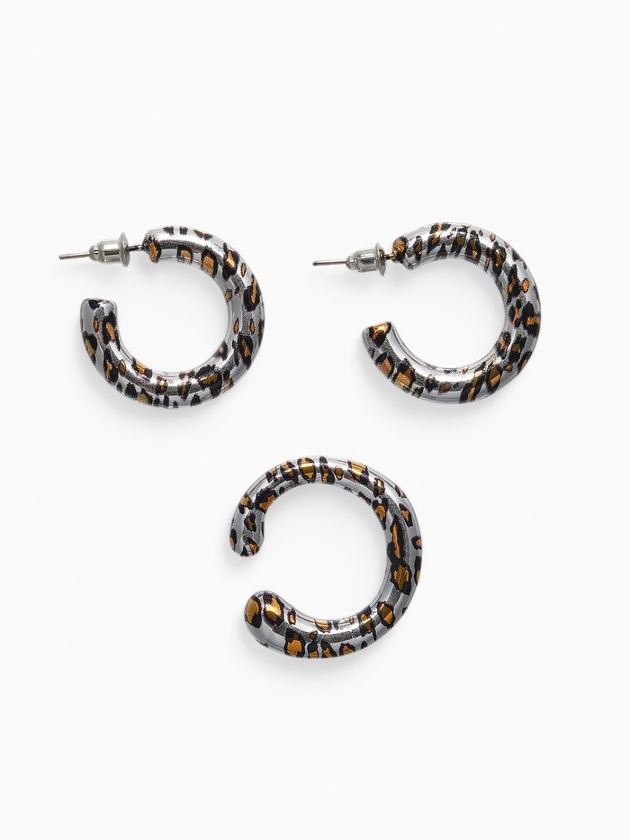 Серьги QF «Леопард», набор 3 пары, кольца, цветной в золоте