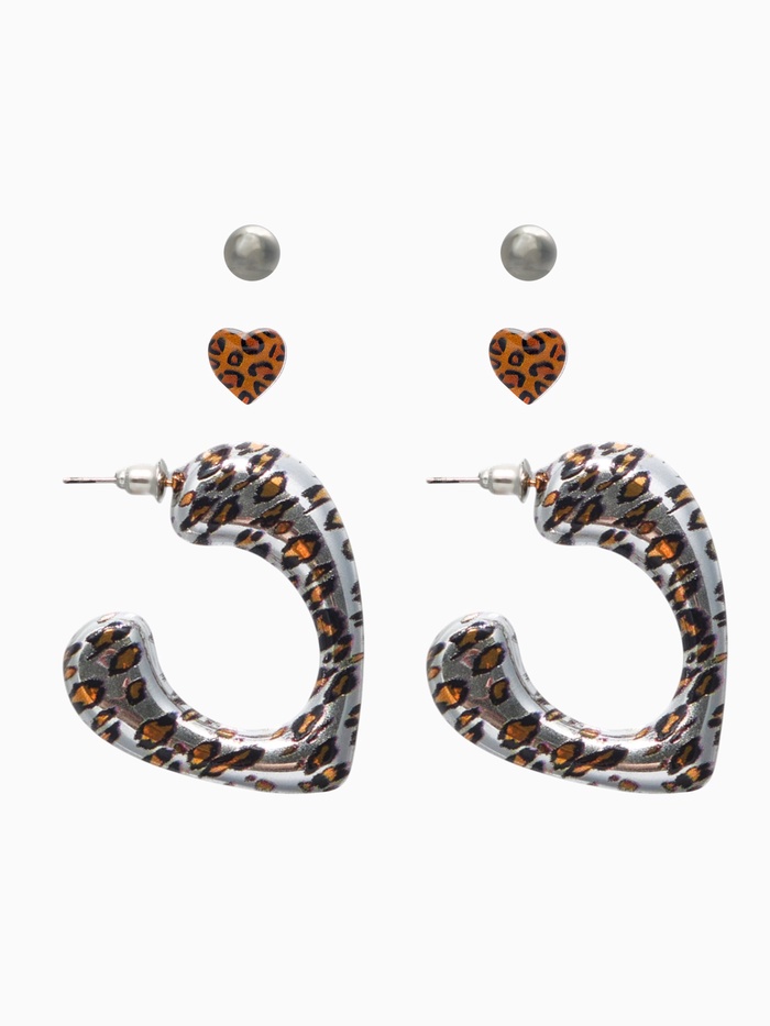 Серьги QF «Леопардовое сердце», набор 3 пары, крупное, цветной в золоте