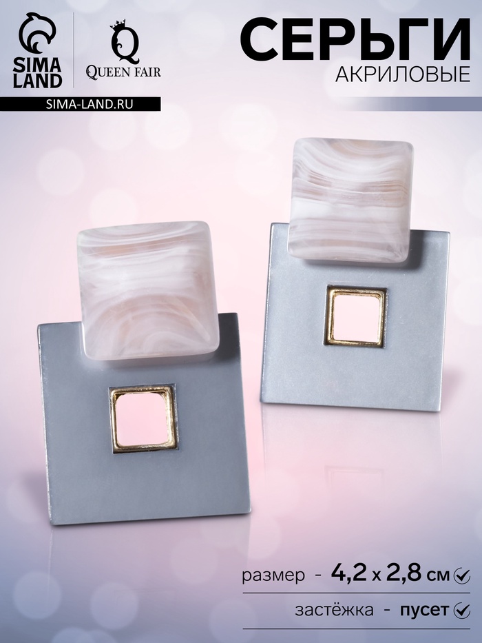 Серьги акриловые «Квадро», цвет бело-голубой в золоте