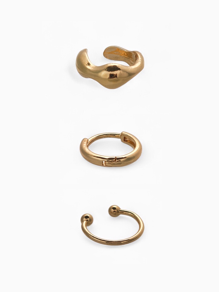Набор серьги и каффа 3 шт. «Минимализм» тренд, цвет золото