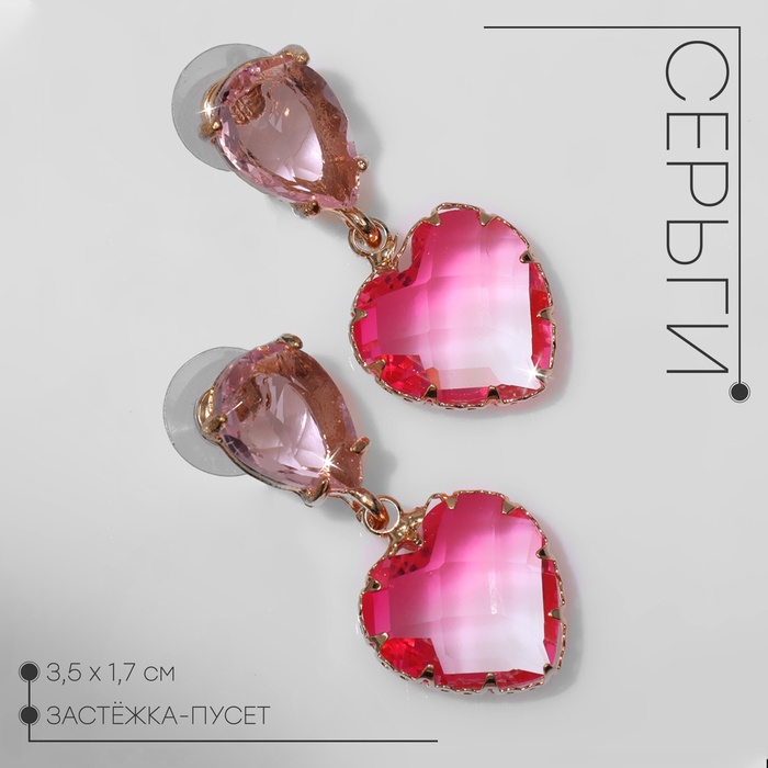 Серьги со стразами «Клео» сердце, розовые в золоте