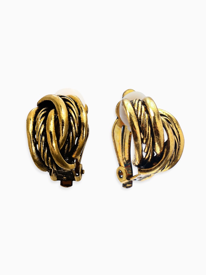 Серьги клипсы для ушей QF «Узел», цвет чернёное золото