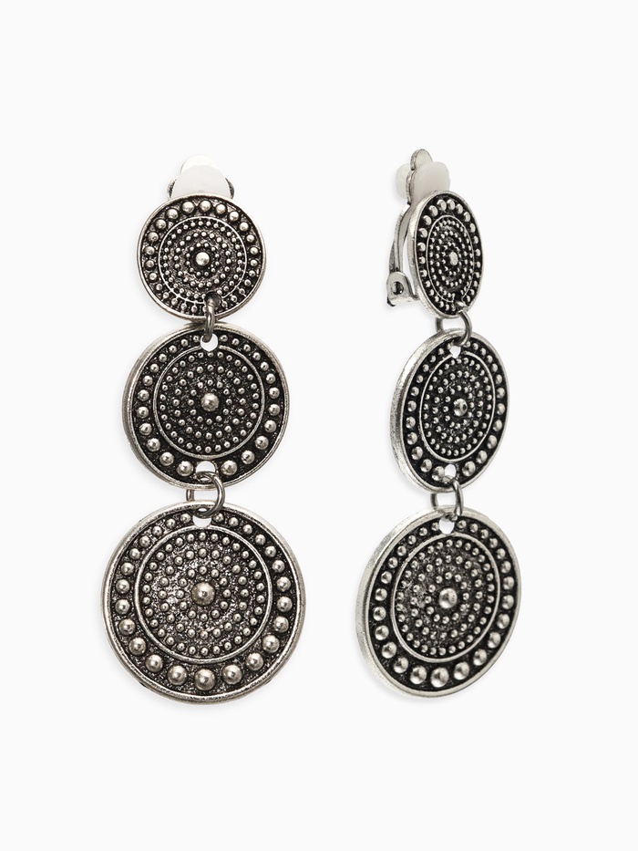 Серьги клипсы для ушей QF «Три диска», цвет чернёное серебро