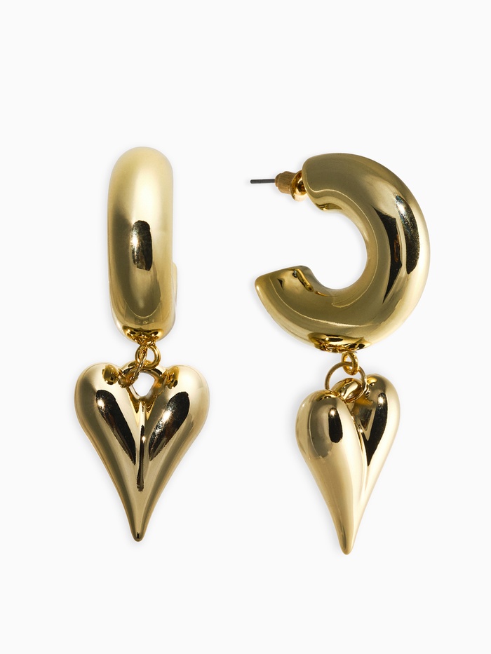 Серьги кольца с подвеской «Сердечки», d=2.5 см, цвет золото