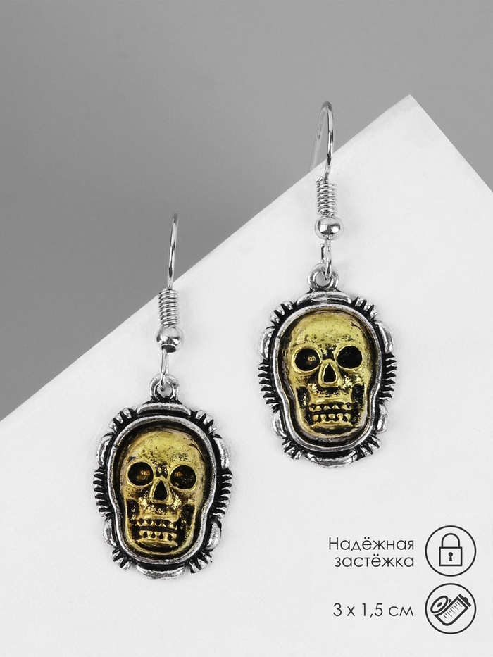 Серьги металл «Черепа», цвет золотистый в чернёном серебре