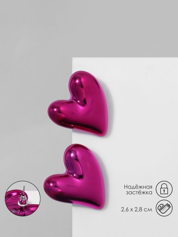 Серьги металл «Сердце» с изгибом, цвет розовый