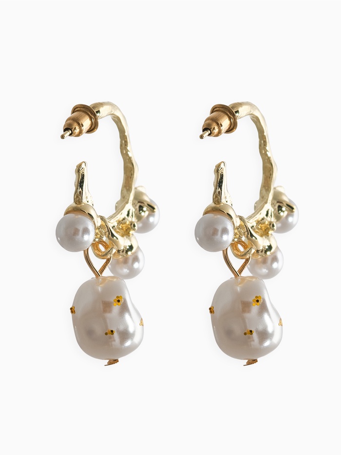 Серьги-кольца с жемчугом «Бусинки в крапинку», белые в золоте