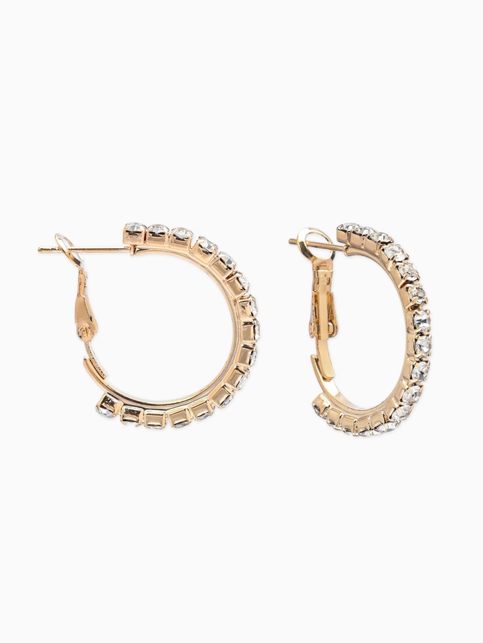 Серьги-кольца со стразами d=2.5 см, белые в золоте