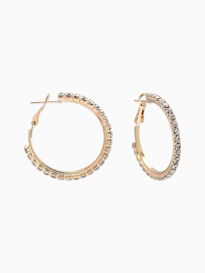 Серьги-кольца со стразами d=3.5 см, белые в золоте