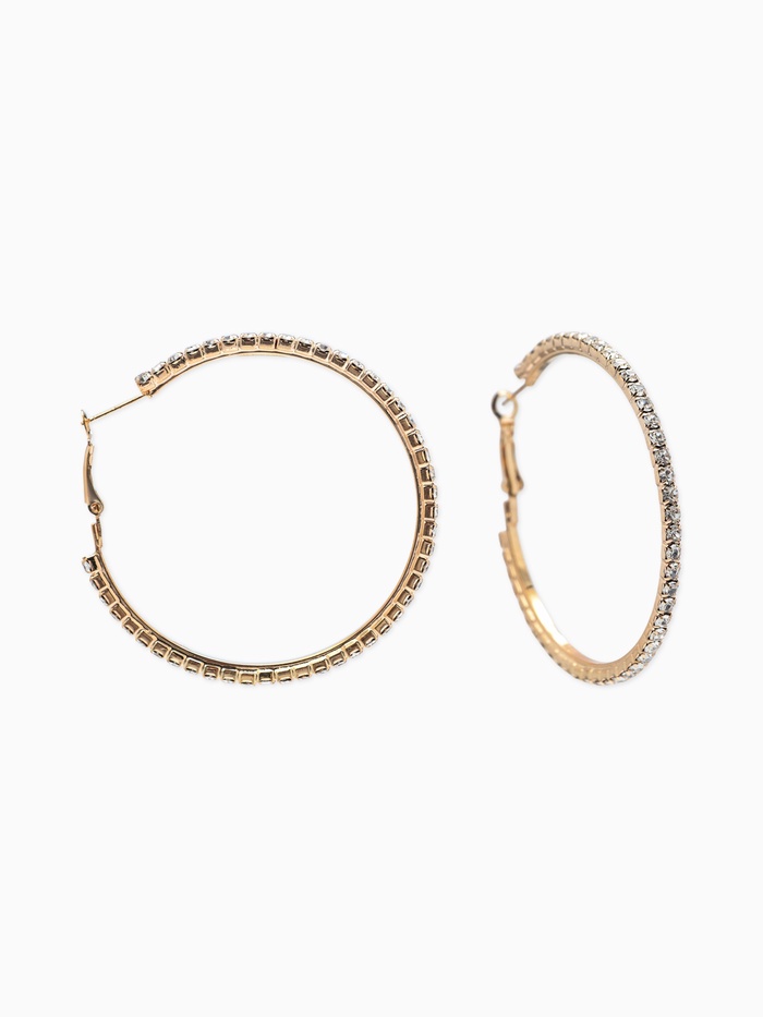 Серьги-кольца со стразами d=4.5 см, белые в золоте