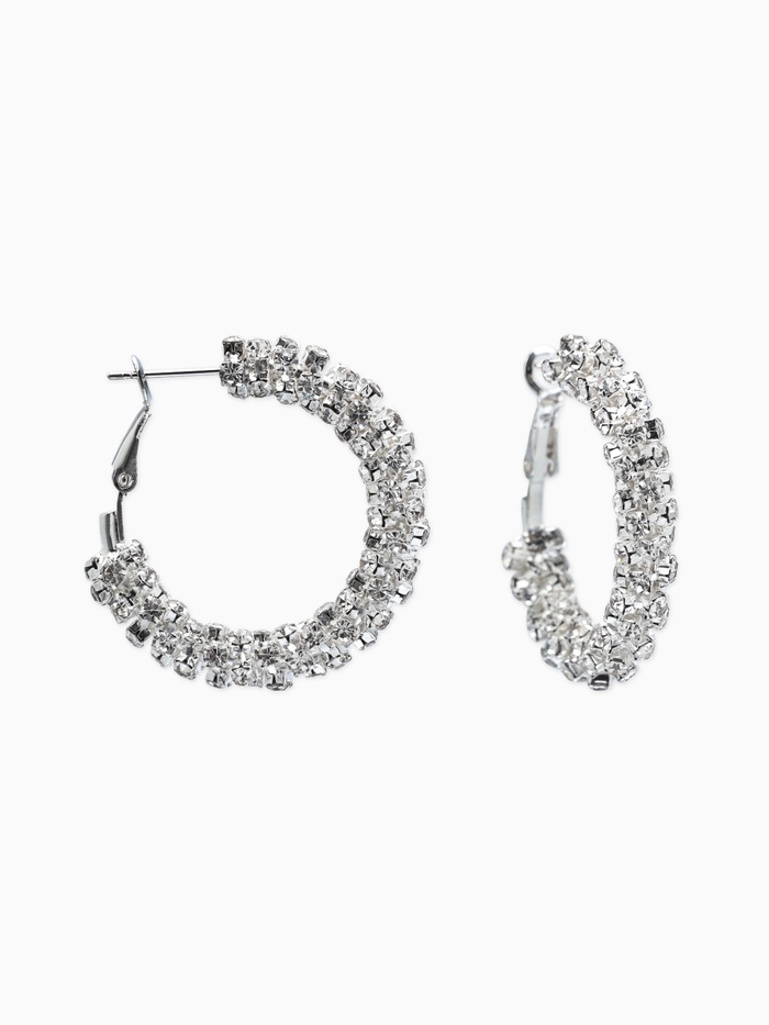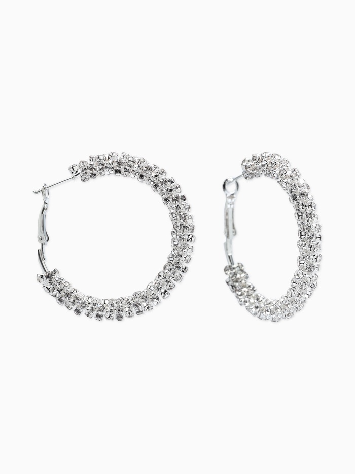 Серьги-кольца со стразами d=3.5 см, белые в серебре