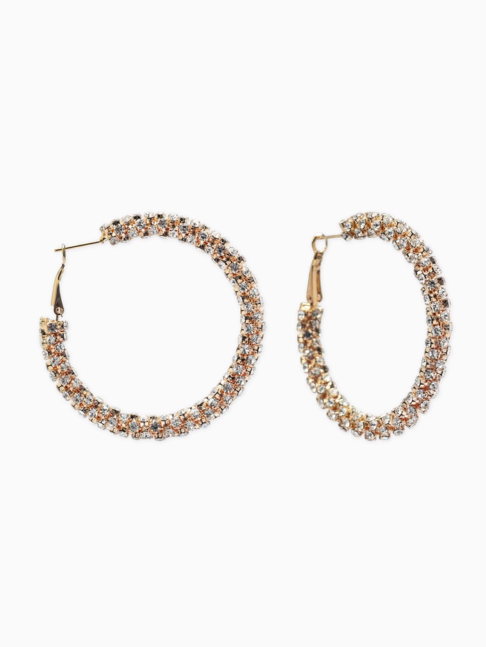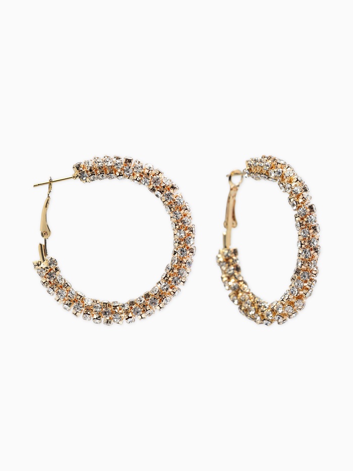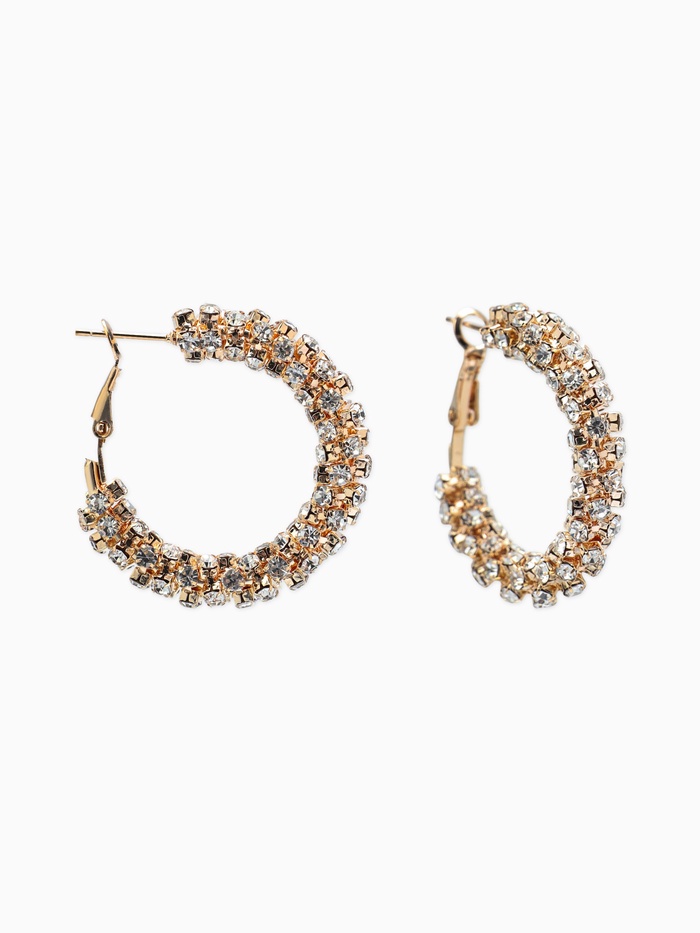 Серьги-кольца со стразами «Россыпь» d=3.5 см, белые в золоте