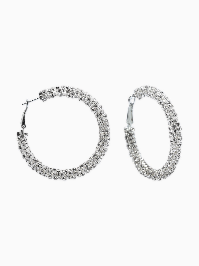 Серьги-кольца со стразами «Россыпь» d=3.5 см, белые в серебре