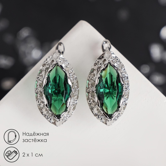 Серьги со стразами «Эдель» эллипс ажурный, цвет изумрудный в серебре