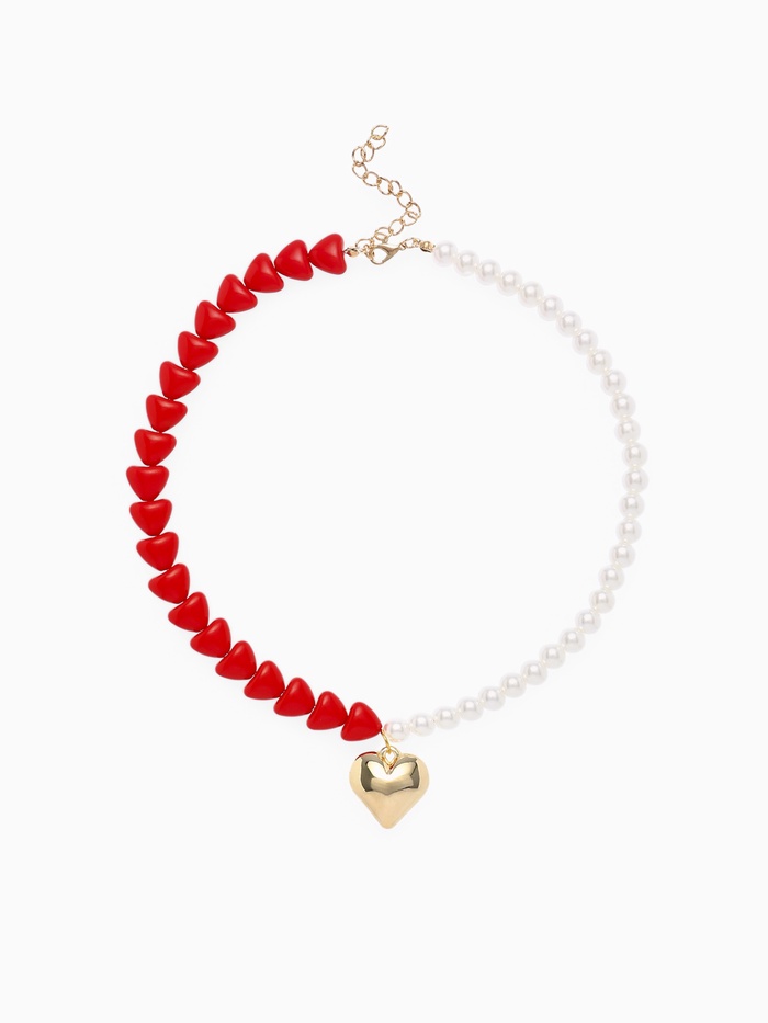 Бусы с жемчугом «Сердце», красно-белый в золоте, 45 см