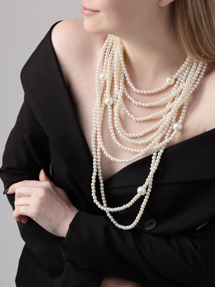 Помимо выбора материала, также важно учитывать длину и форму бус. Длинные бусы можно носить в несколько оборотов или завязывать узлом, создавая эффектные визуальные акценты. Короткие, плотно прилегающие к шее бусы, такие как чокеры, подчеркнут линию шеи и декольте.