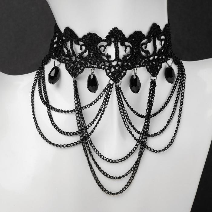 Чокер «Госпожа» ажур и цепочки, цвет чёрный ,30см