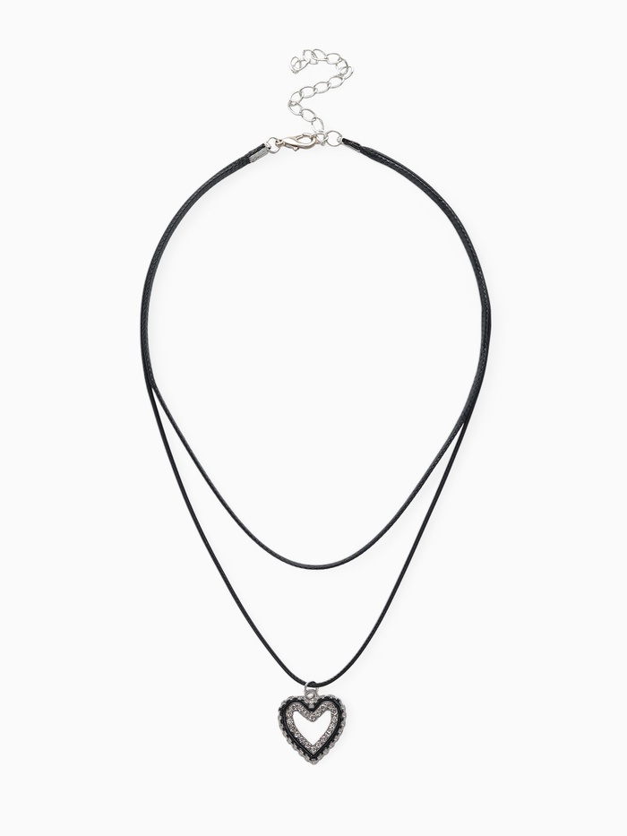 Чокер «Двойной» с нитью, сердечко, цвет бело-чёрный в серебре, L=32 см