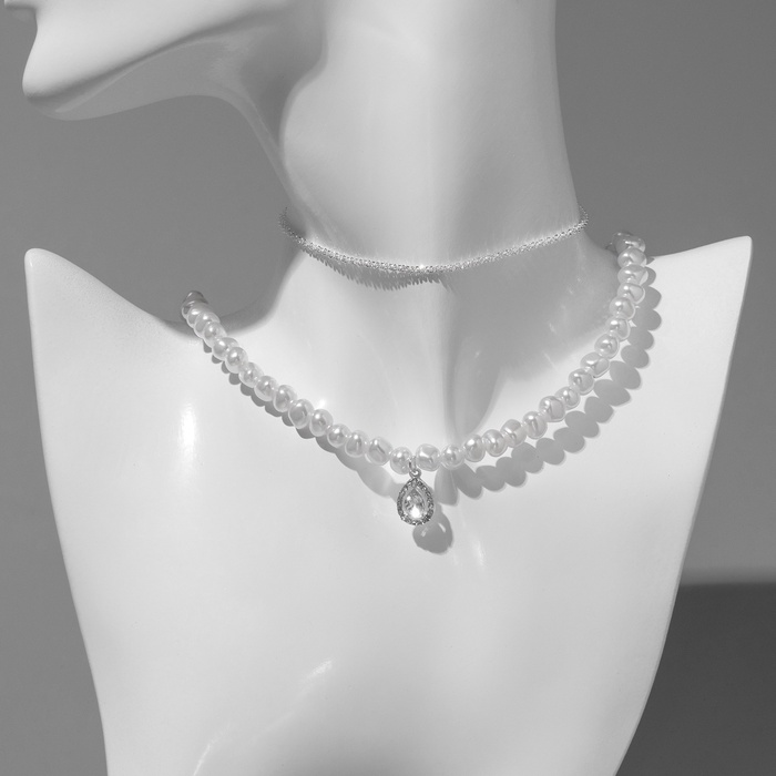 Чокер-колье многослойный «Бусина» жемчужное, цвет белый в серебре