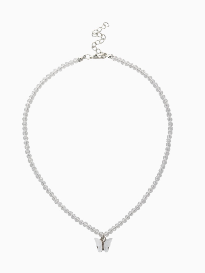 Чокер «Бабочка» хрусталь, белый в серебре, 36 см + 5 см доп, цепочка