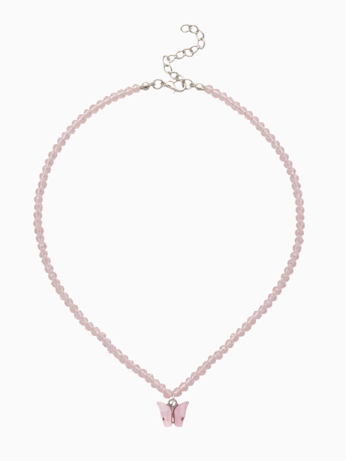 Чокер «Бабочка» хрусталь, розовый в серебре, 36 см + 5 см доп, цепочка