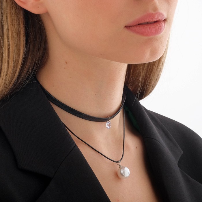 Чокер-колье «Сияние» соло, цвет белый в серебре, 36 см